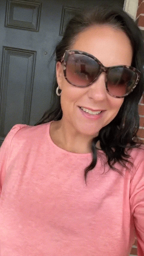 This stylish top features a flowy, comfortable fit with button-accented 3/4 sleeves for a touch of elegance. Offering flattering coverage, it's a perfect choice for year-round wear. The curved hem adds a stylish touch, long enough to cover the rear.