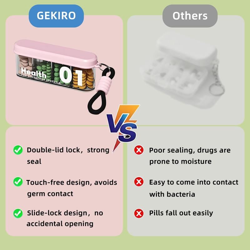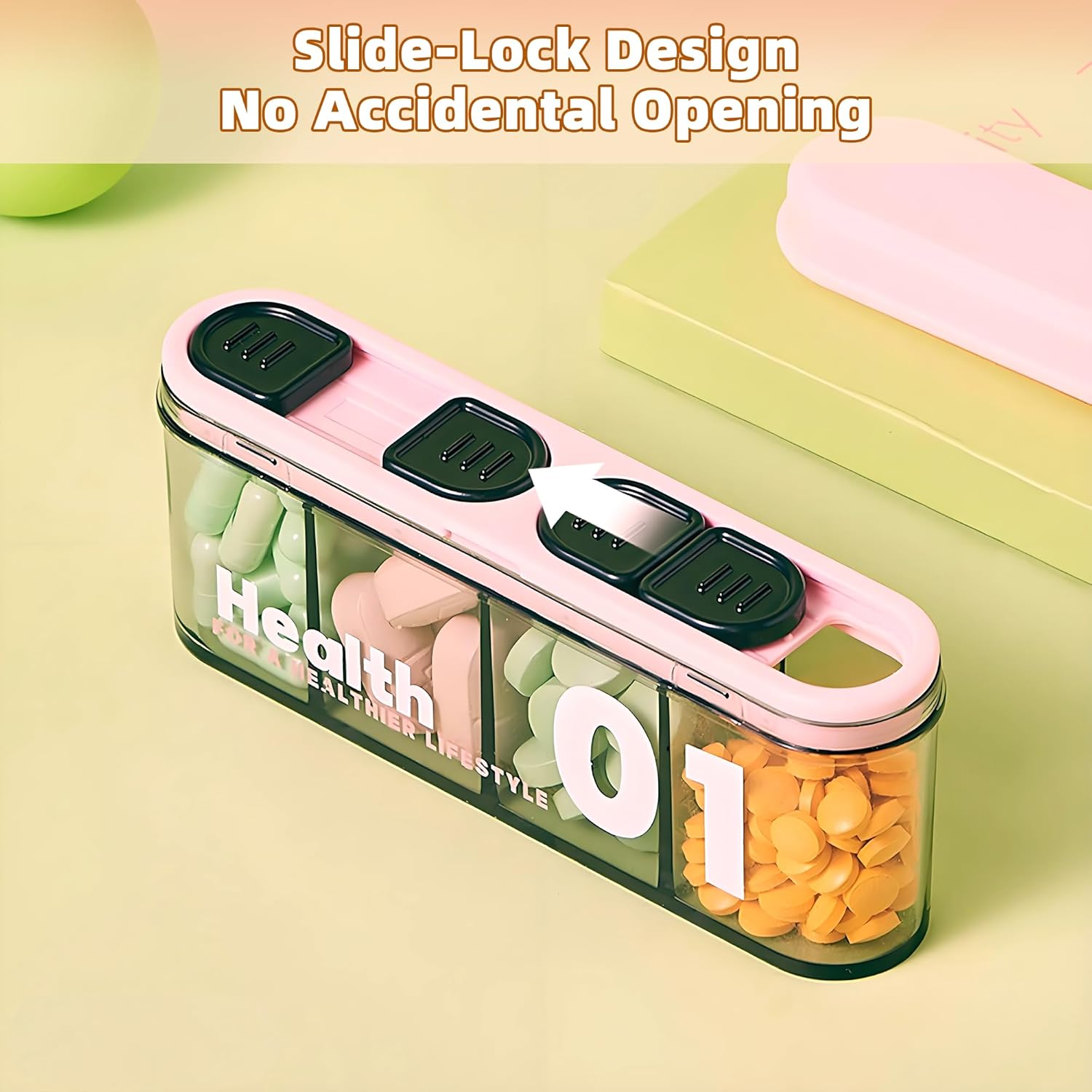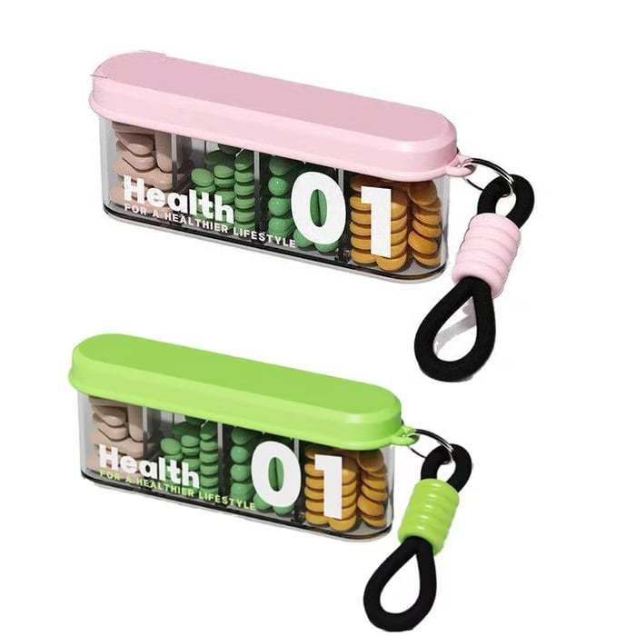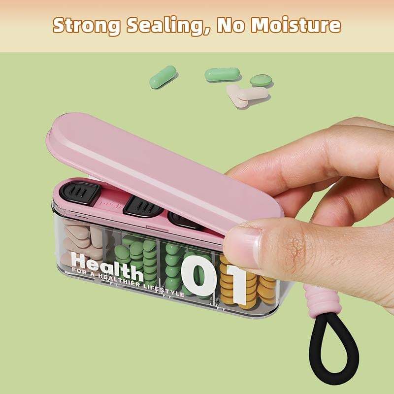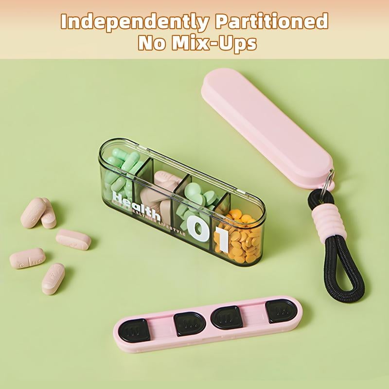 2PCS Portable Pill Dispenser with 4 Compartments, Travel Pill Bottle Organizer with Strong Seal,Anti-Mix Supplement Organizer,Pill Box Case with BPA-Free,Pill Container with Wide Opening Design