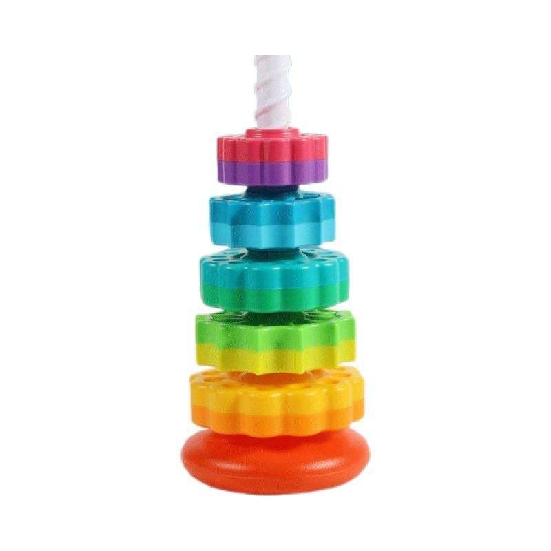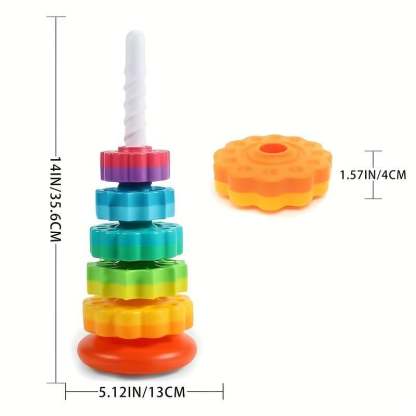 [Hours of play and fun! A new version of the classic "Stacked toys for kids"! The rotating toy tray goes through the corkscrew and spins in a mesmerizing way. Hours of fun and laughter!