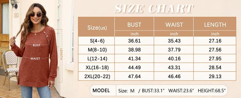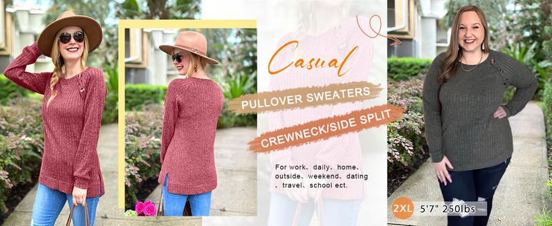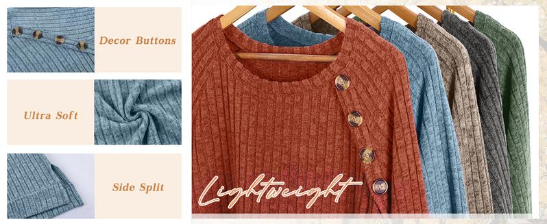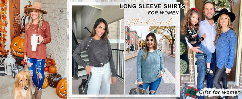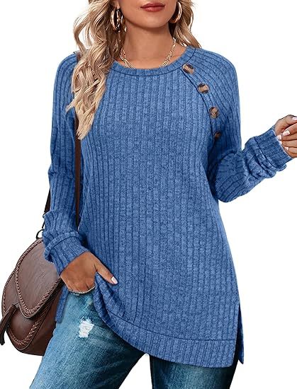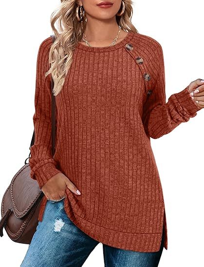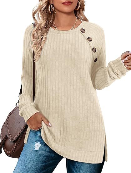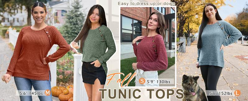 Long Sleeve Tops for Women Tunics Buttons Front Slit