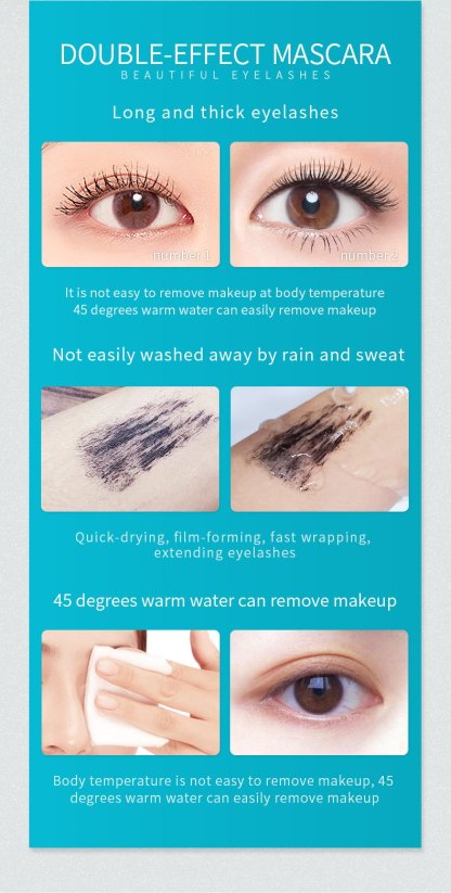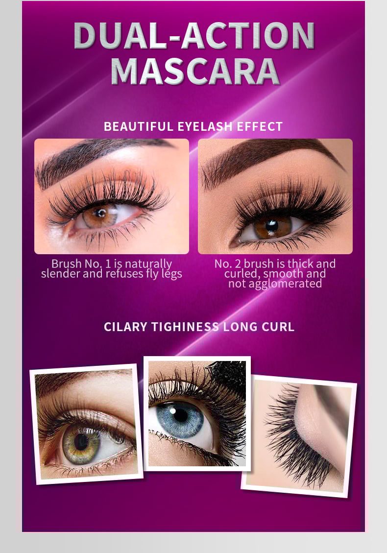 2 IN 1 - Make your natural lashes to an impressive length. Using 4D silk fiber to coat each lash, the 2-in-1 mascara enhances lashes, making them thicker. Turn up the volume and get your most spectacular lashes.