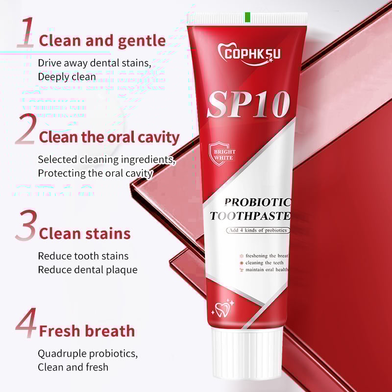 RICH IN MANY PROBIOTICS: This toothpaste contains probiotics such as Lactobacillus HN019, Lactobacillus paracasei LPC37, Lactobacillus cereus LC11 and Lactobacillus phagocytophilus NCFM to relieve gum discomfort, maintain tooth enamel and keep your breath fresh.