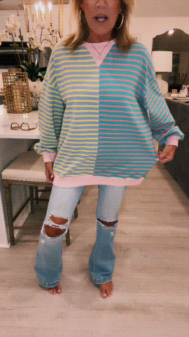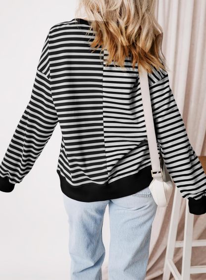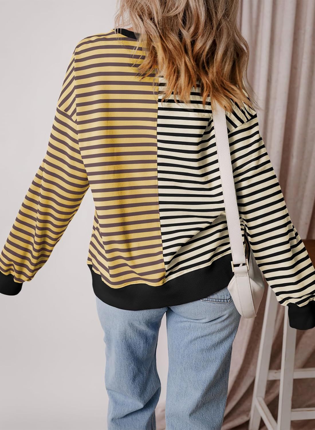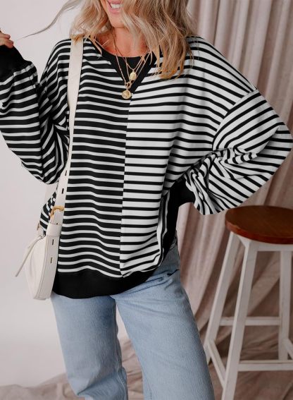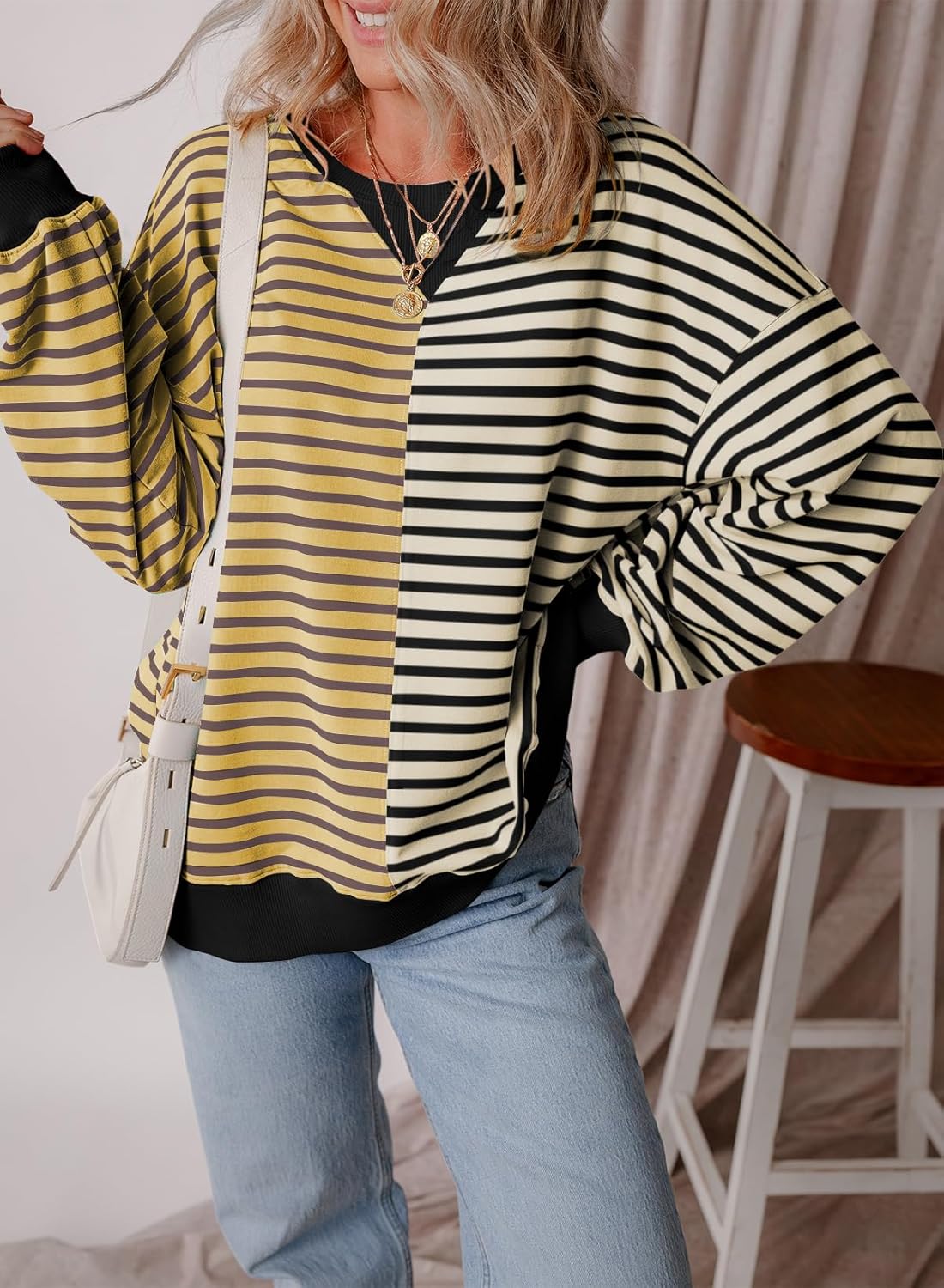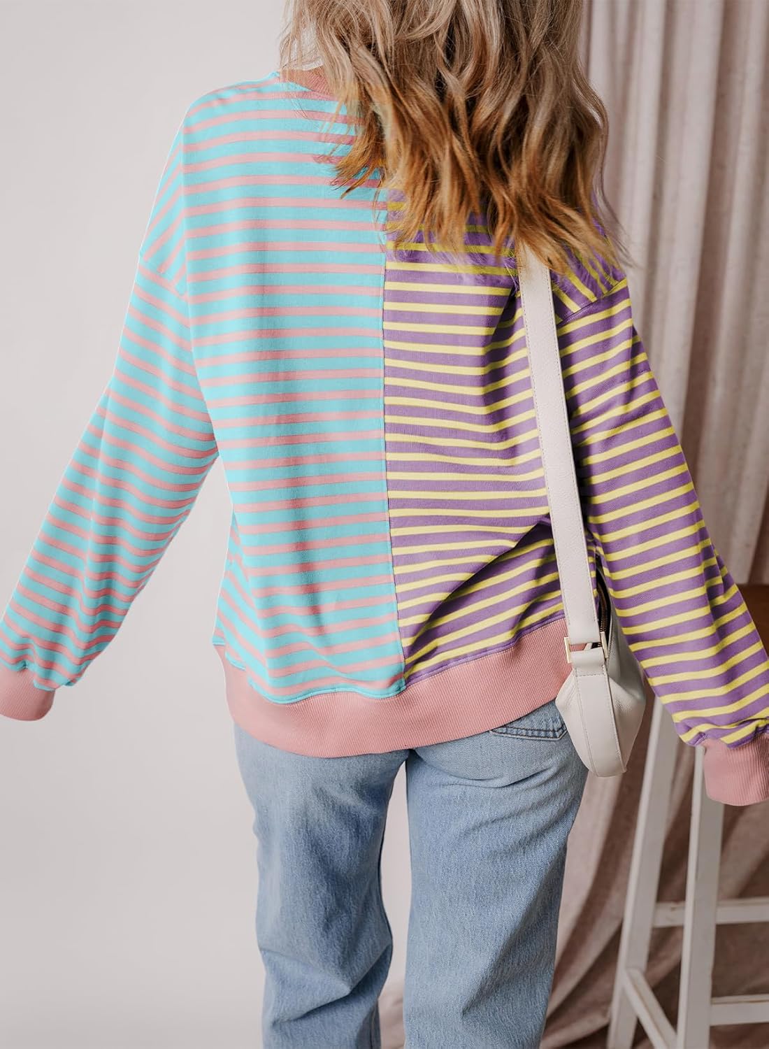 Women’s Oversized Sweatshirts Striped Color Block Crewneck Sweatshirt