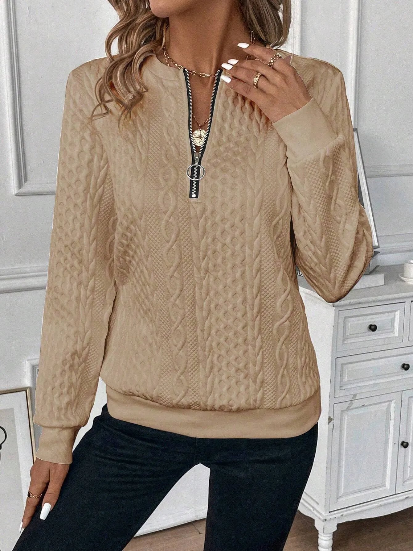 Women Geometric Print Zip-Up Stand Collar Casual Sweatshirt(Buy 2 Free Shipping)