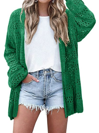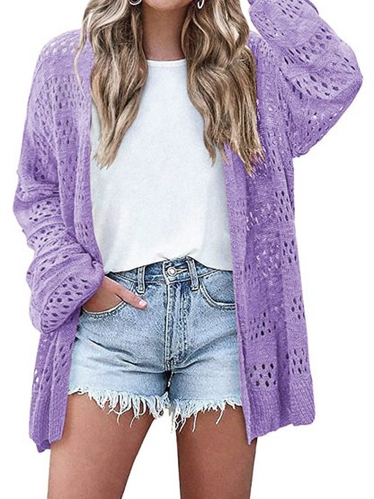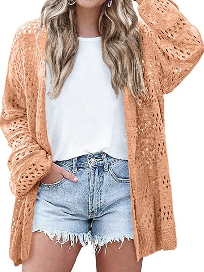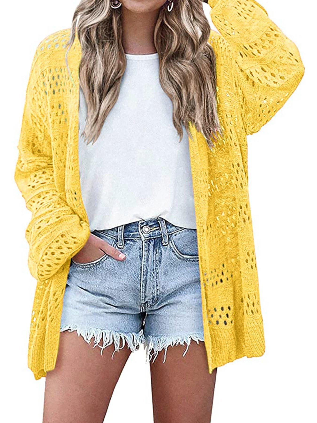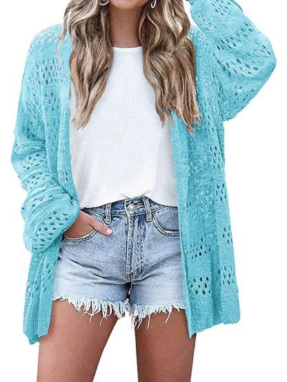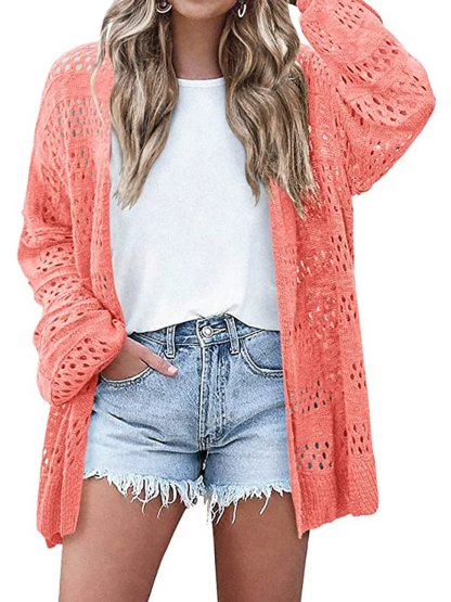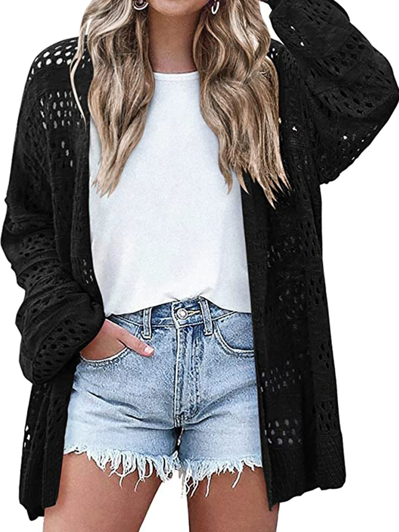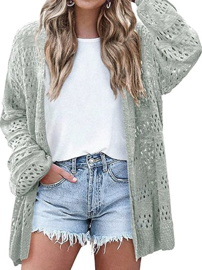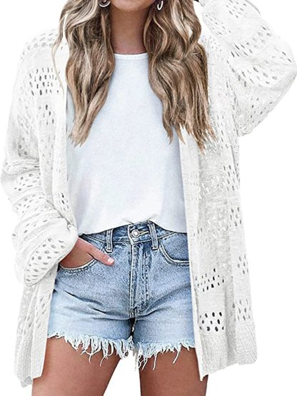Women's Lightweight Crochet Cardigan Long Sleeve Open Front Oversized Summer Sweater Batwing Beach Fashion