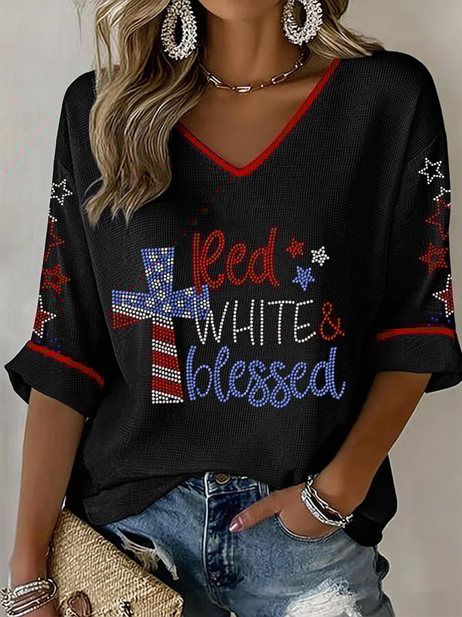 Women's American 250th Anniversary Three-Quarter Sleeve V-Neck Top