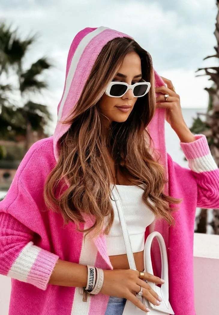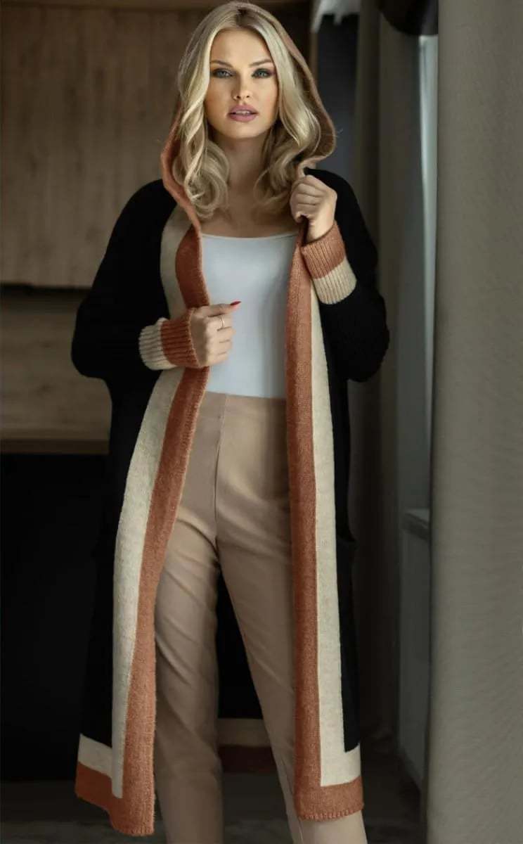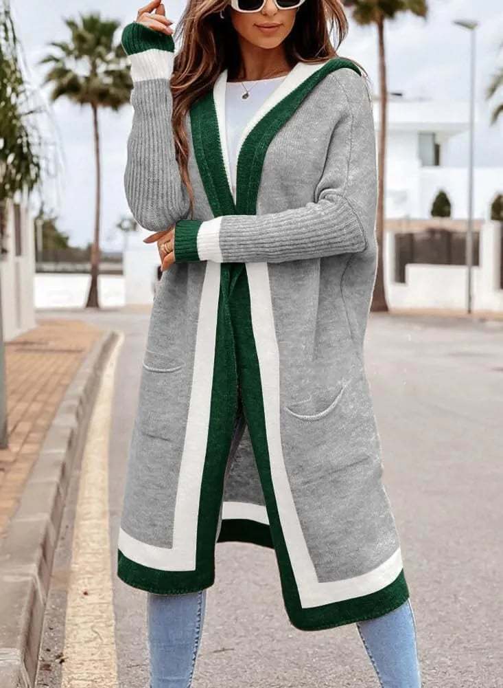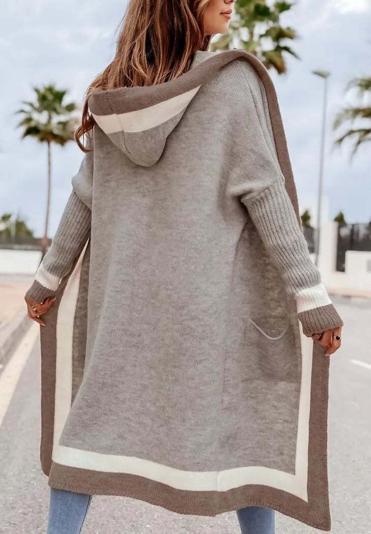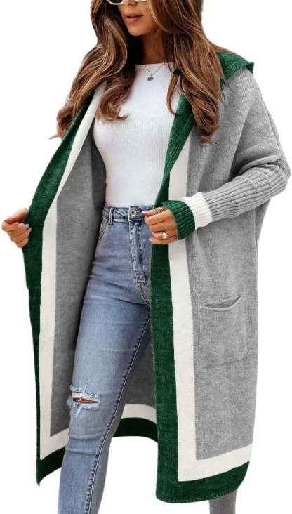 ✨Women's Color Block Vertical Striped Open Front Oversized Hooded Long Cardigan Sweaters with Pockets (Buy 2 Free Shipping)