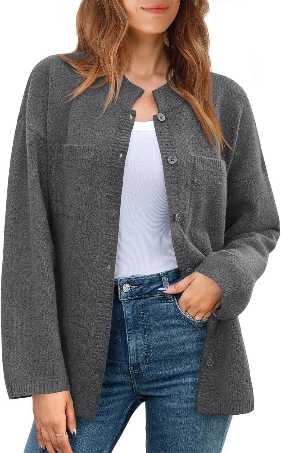 Womens Oversized Button Down Fall Sweater Jackets Casual Long Sleeve Knit Shirts
