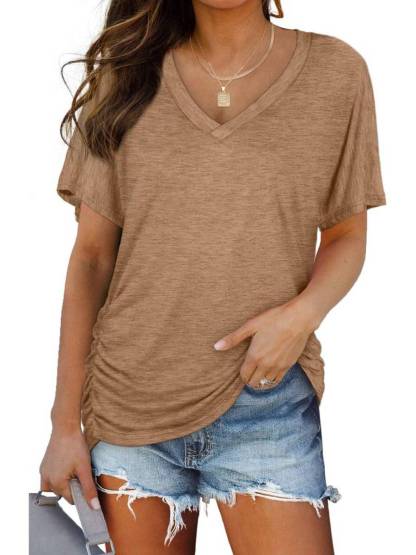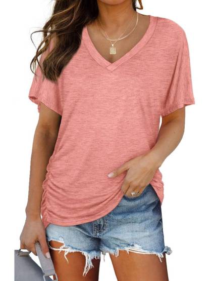 Our Casual Short Sleeve V Neck Basic T-shirts are made of skin-friendly and comfortable materials, simple and chic, allowing you to have a variety of looks from comfortable to chic and fashionable.