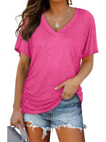 This short sleeve tops for womens casual soft v neck shirts is made of 60%polyester, 35% rayon and 5 %spandex, soft, lightweight, breathable, light-stretch, wrinkle-free and skin-friendly.