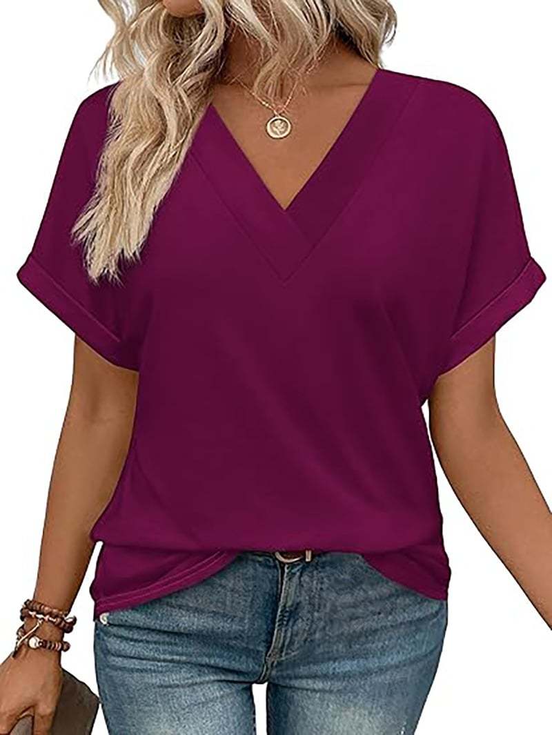 Womens Summer Tops Short Sleeve Basic Casual V Neck T Shirts Trendy Fashion 2025