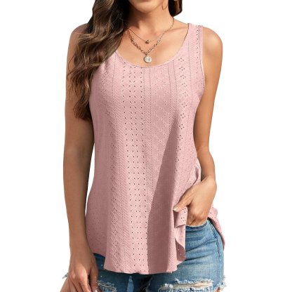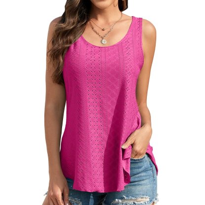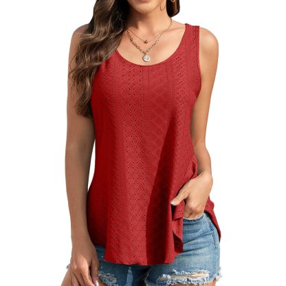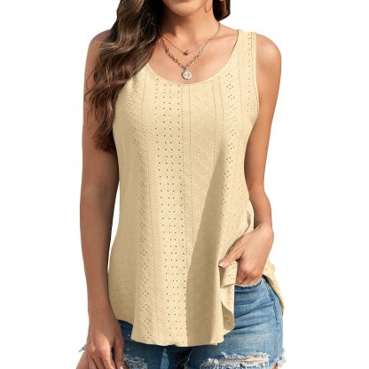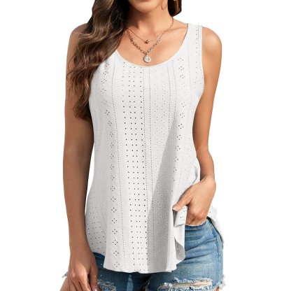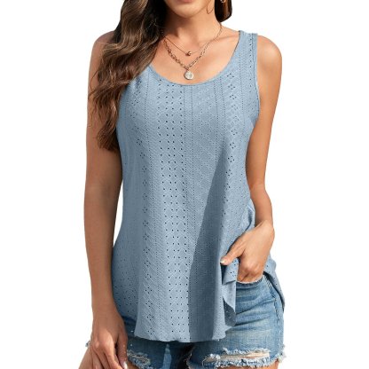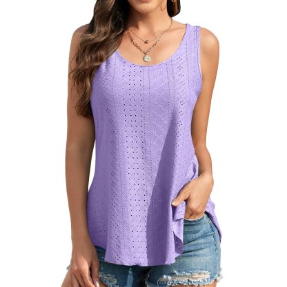 Womens Tank Tops Sleeveless EyeletEmbroidery Scoop Neck Loose Fit Casual SummerFlowy(Buy 3 Free Shipping)